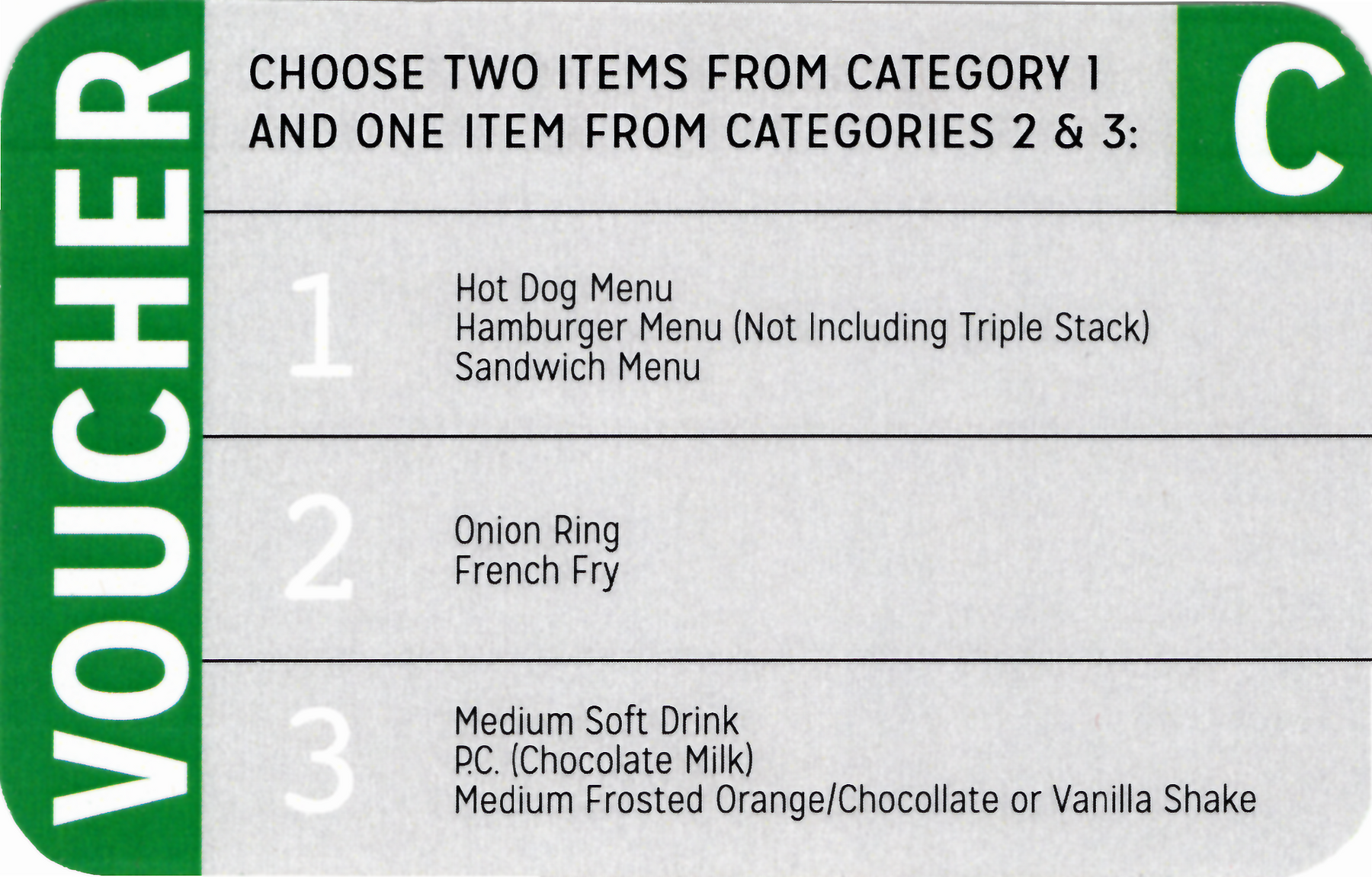 Please Note: The meal voucher pricing covers the most expensive combination of food items for that voucher as well as tax. No change is given.
