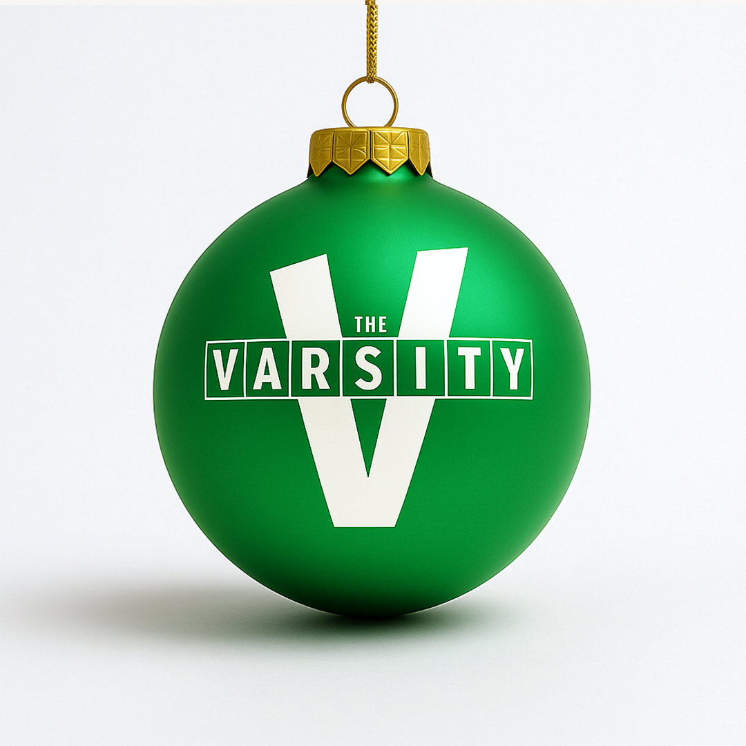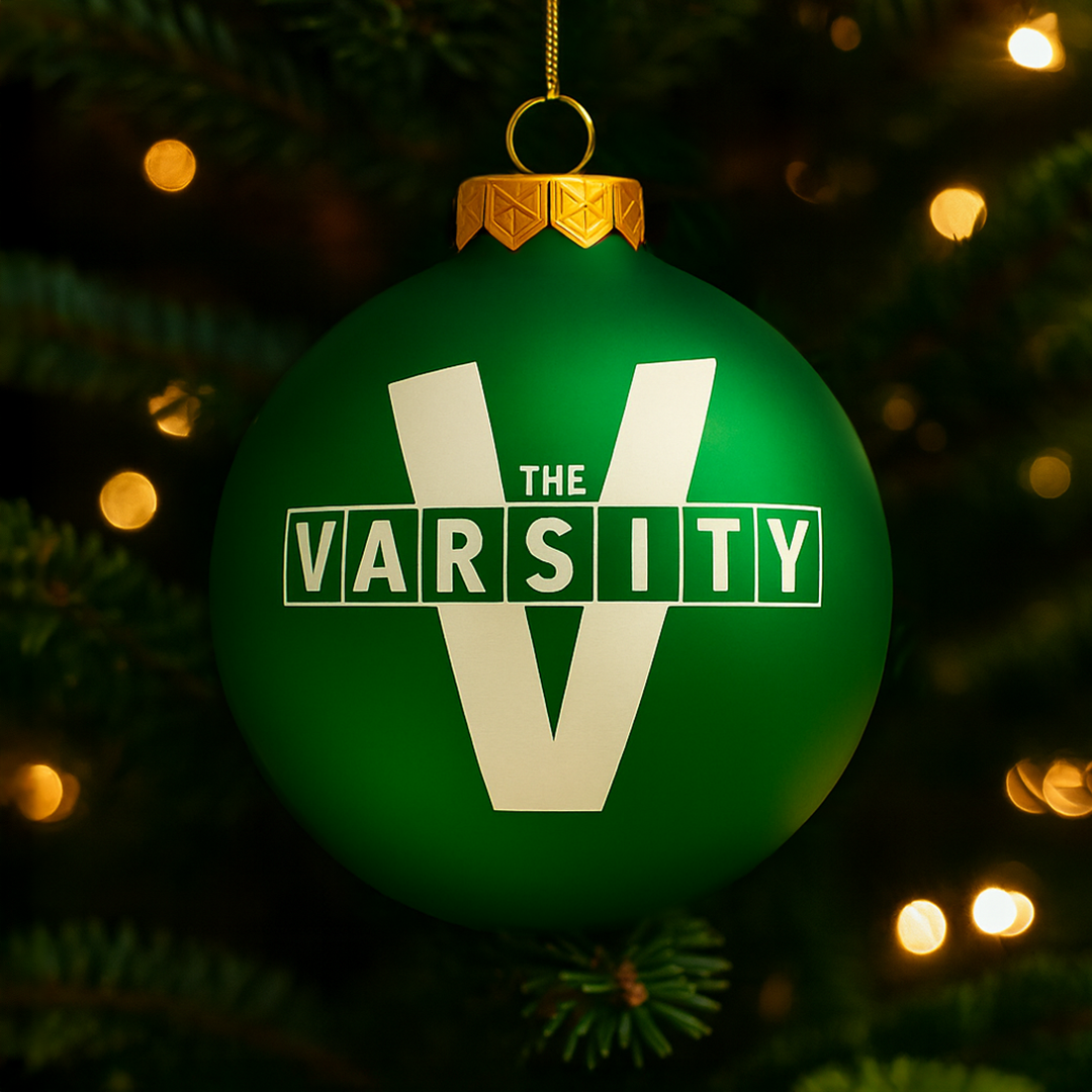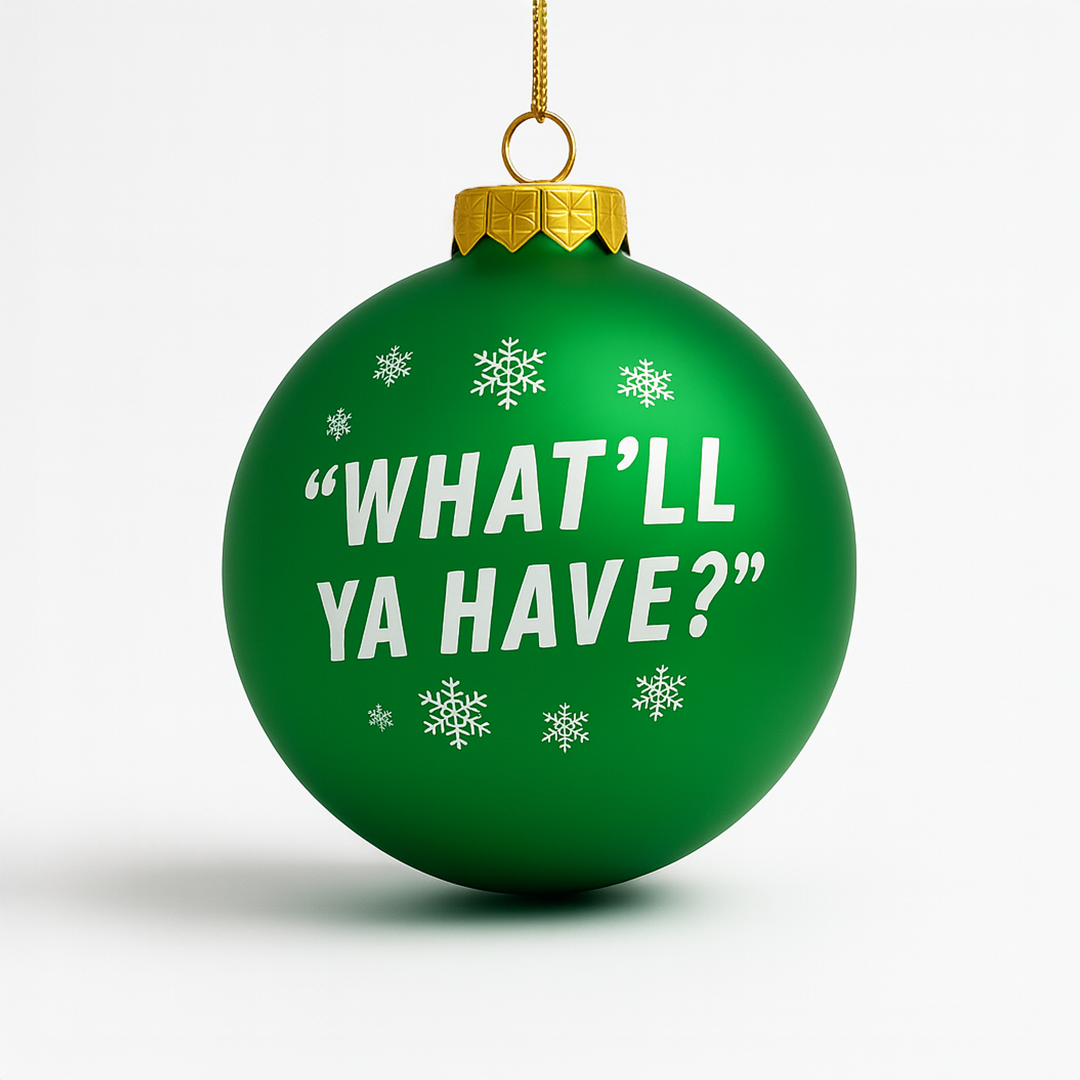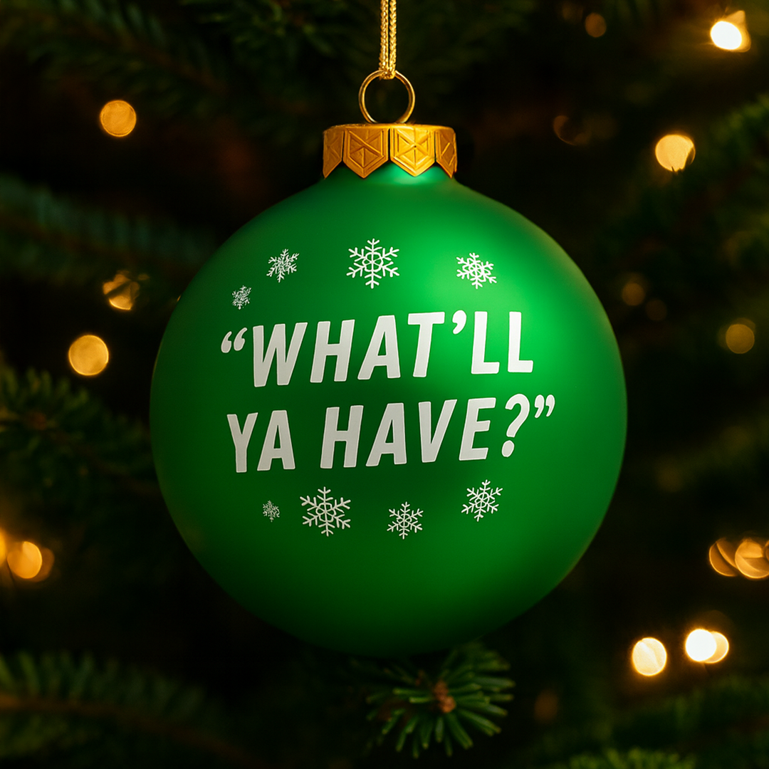 Bring a taste of Atlanta to your tree! Beautiful glass ornament. Varsity "V" logo on one side and "What'll Ya Have?" on the other.